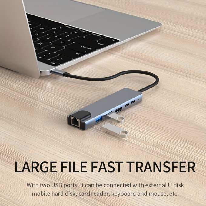 Versatile Connectivity: This 6-in-1 USB C Hub is the perfect solution for all your connectivity needs, with 2 USB 3.0 ports, RJ45 100M Ethernet port, adapter, and USB-C multi-port adapter.